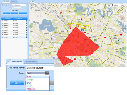 monitorizati daca o unitate a intrat/iesit dintr-o zona definita | editare (nume, culoare, coordonate)